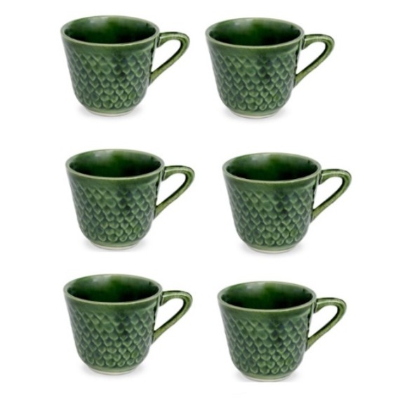 JOGO XÍCARA CAFÉ PORCEL C/6 PÇ VERDE RELEVO