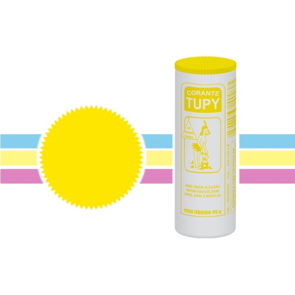 O Corante Tupy® é um corante de composição orgânica, tendo o seu pH, em média, neutro, quando dissolvido em água quente, não apresenta odor e sua forma física é sólida e não apresenta característica tóxica.