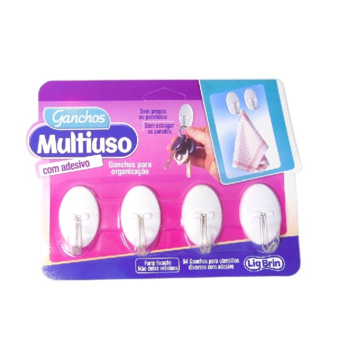 GANCHO ADESIVO MULTIUSO 4 PC PEQ