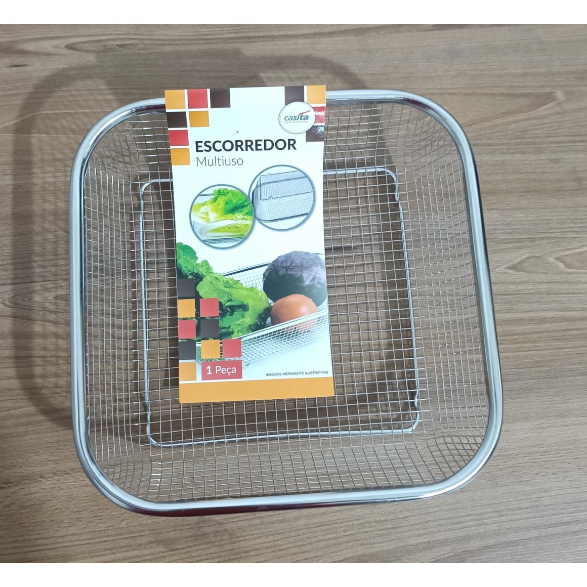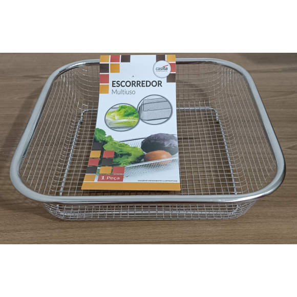 ESCORREDOR INOX TELADO QUADRADO MULTIUSO (24X24X6)CM