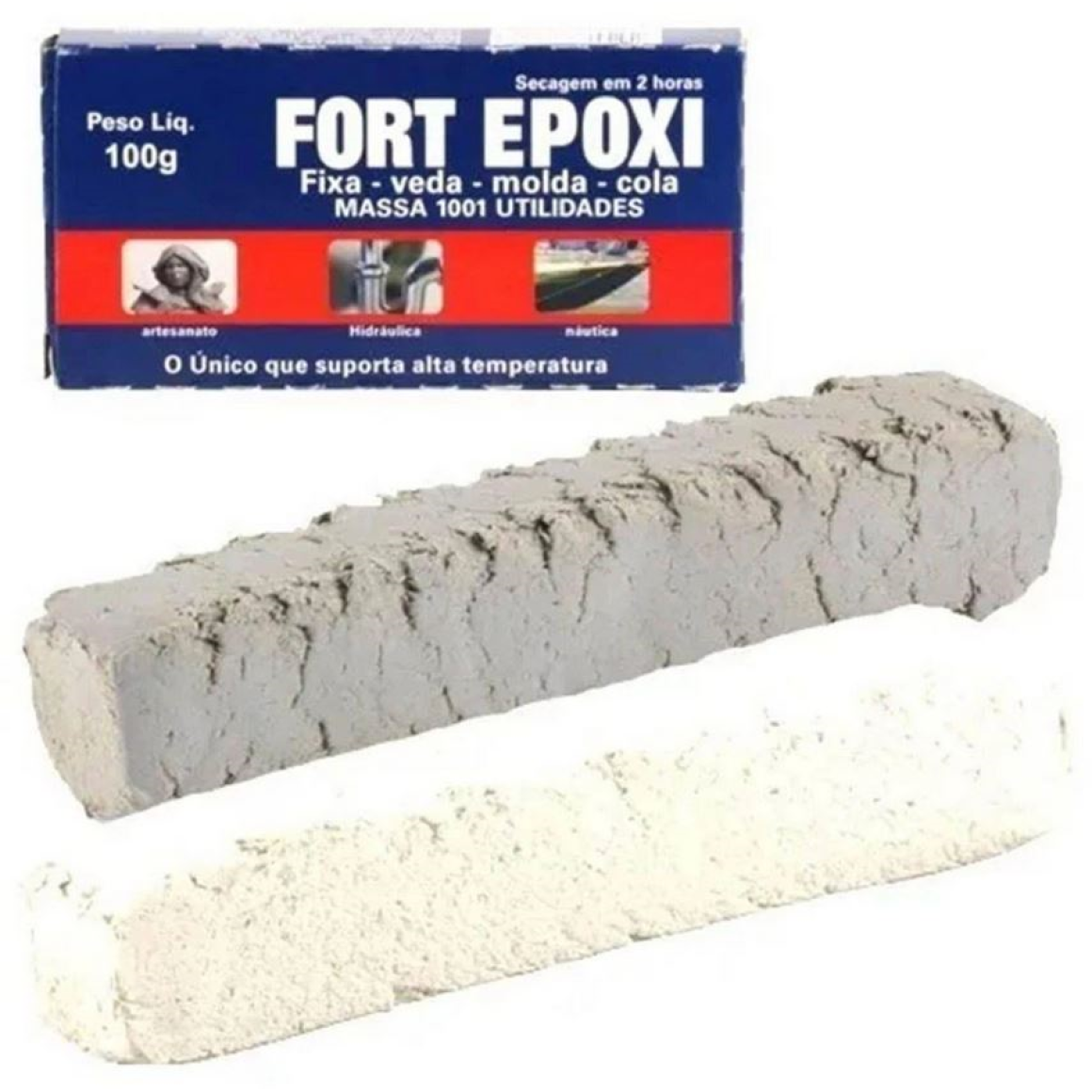 Cola forte, conhecida como massa epóxi ou cola epoxi para junção e selagem de superfícies. Fácil de usar e ótimo custo benefício.